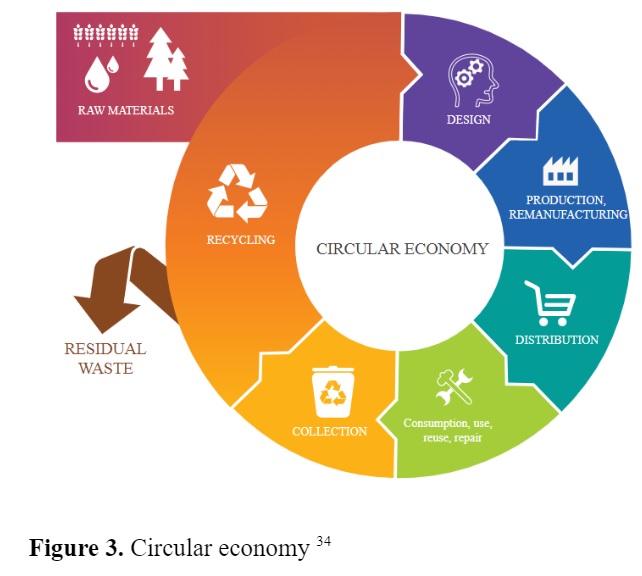 Direct practical action for decoupling is to implement the circulation of materials (see figure 3). The transition to a more resource-efficient circular economy offers a suitable solution, which in turn requires systemic changes in policy decisions as well as in the attitudes and behaviour of businesses, consumers and society. The aim of the circular economy is to decouple economic growth from the use of primary raw materials by creating a circular production and consumption system with the least possible losses. Resources need to be managed efficiently throughout their life cycle, from production and consumption to waste management and recovery, creating more value from existing resources while generating less waste. In addition to reducing the environmental impact, by effectively applying the principle of the circular economy, companies can reduce costs, increase their growth potential and promote their reputation. That is why it is important for the competitiveness and sustainable growth of a highly resource-efficient circular economy, focusing on existing materials and products: re-use, improvement, and recycling. (33)